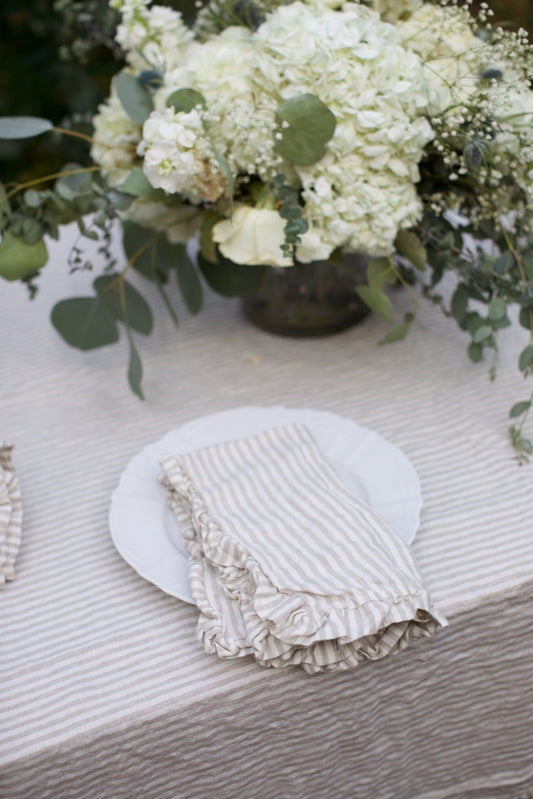 Vintage Blossom Stripe Flax Linen Ruffled Edge Napkin