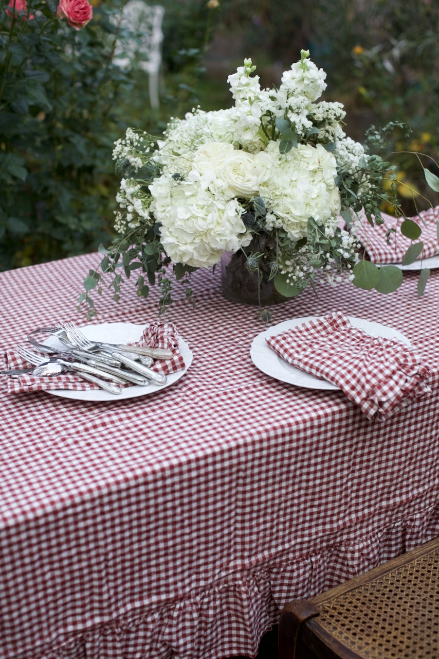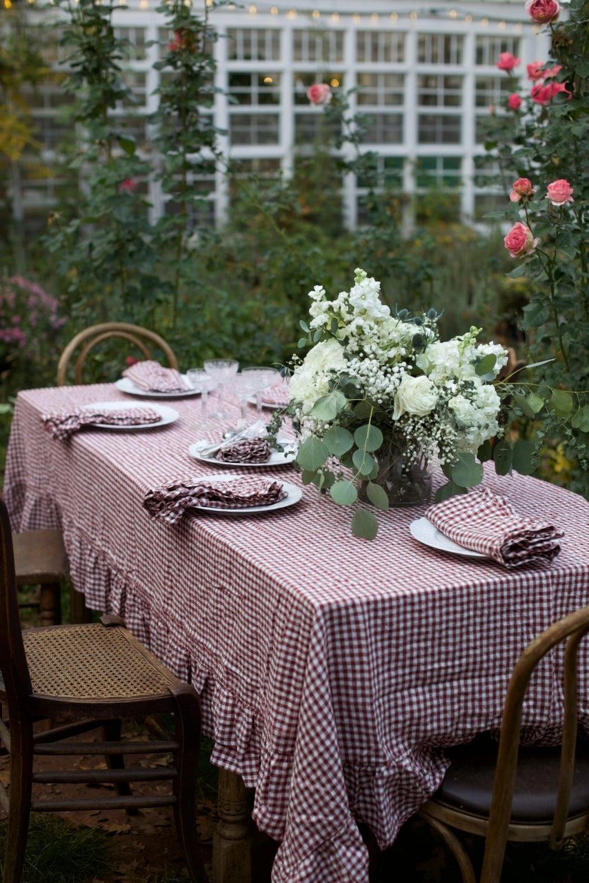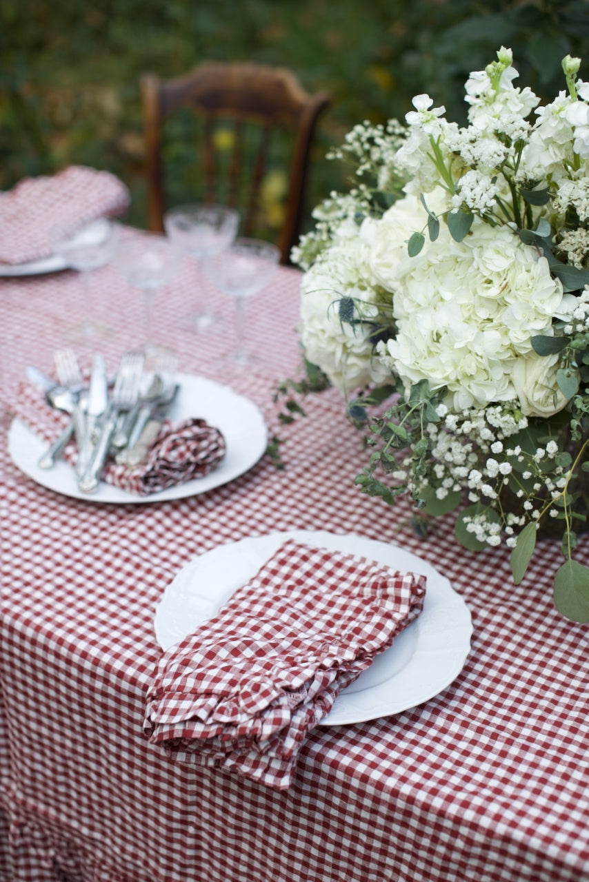 Mulberry Gingham Flax Linen Ruffled Edge Napkin